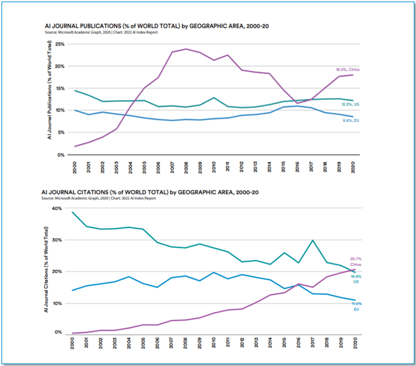 按照斯坦福研究院Human-Centered AI发布的《2021年人工智能指数演讲》。
